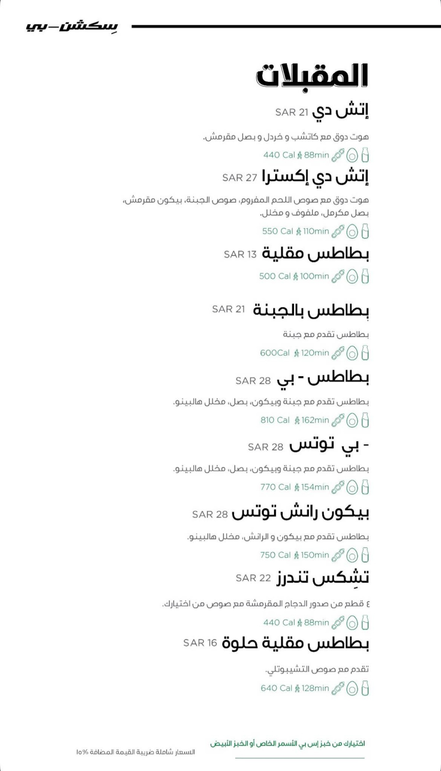 منيو سكشن بي 2026 — الأسعار مع السعرات الحرارية